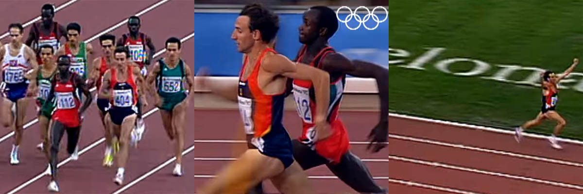 La carrera fue totalmente diferente a cómo yo la tenía pensada. Yo había pensado que iba a ser una carrera mucho más rápida, que se iba a correr a un ritmo más o menos de 3:35, porque en semifinales habíamos corrido en 3:33, y la sorpresa fue que al pasar ya por el primer cuatrocientos vi que era una carrera lenta, que iríamos lentos y que iba a ser una carrera de los últimos cuatrocientos-quinientos metros y que había que estar bien colocado en la última vuelta para estar lo más cerca posible de la cabeza, y eso es lo que hice. Y a falta de doscientos o doscientos cincuenta metros vi cómo el alemán, Herold, se abría para pasar antes de la curva y coger la calle 1 a Chesire, al keniata, ví que había un hueco y no me lo pensé, pasé por ahí y me dije, 'bueno, aquí hasta el final, hasta dónde llegue'. A falta de cien metros volví a cambiar otra vez y a falta de cincuenta metros ya me veía campeón olímpico, ya sabía que iba a ganar la carrera.