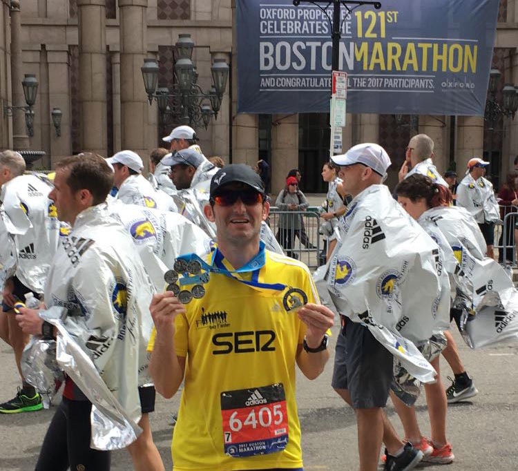 Pablo Palacios viene de terminar la Maratón de Boston, con lo que ha completado las seis 'Majors' ¡casi nada! En Asturias debe de haber cuatro que lo hayáis hecho...