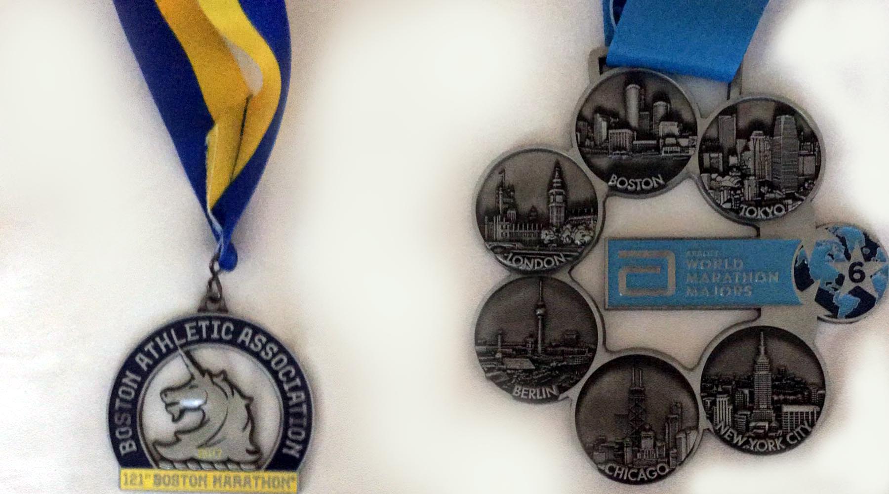 Cuando acabas en Boston, pasas por la línea de meta, te dan la medalla de Boston y luego ya te diriges a otro sitio para que te den la otra medalla, la de todos los 'Majors', porque previamente tienes que apuntarte...