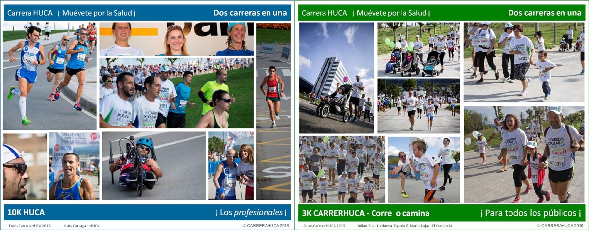Manuel: Yo estaba pensando en que nuestra seña de identidad precisamente no es la carrera de 10 kilómetros, en la cual el primero año hubo 555 personas, el año pasado hubo 750, o sea que hay una participación muy amplia... pero la sorpresa, desde el primer año, fue lo que se ha quedado en llamar la 'carrerHUCA', corre o camina 3 kilómetros, dónde se nos apuntaron mil personas el primer año, mil quinientas el año pasado, y sacamos dos mil dorsales este año, y dónde va la gente desde papás y mamás con los niños y las sillitas hasta abuelos y abuelitas con el nieto de la mano, unos a correr, otros a trotar, otros a caminar... y eso fue la gran sorpresa de la actividad. De hecho, es dónde vamos a aumentar número de inscripciones. Además es gratuita, es muy festiva y probáblemente sea la seña de identidad de la carrera HUCA, la carrerHUCA