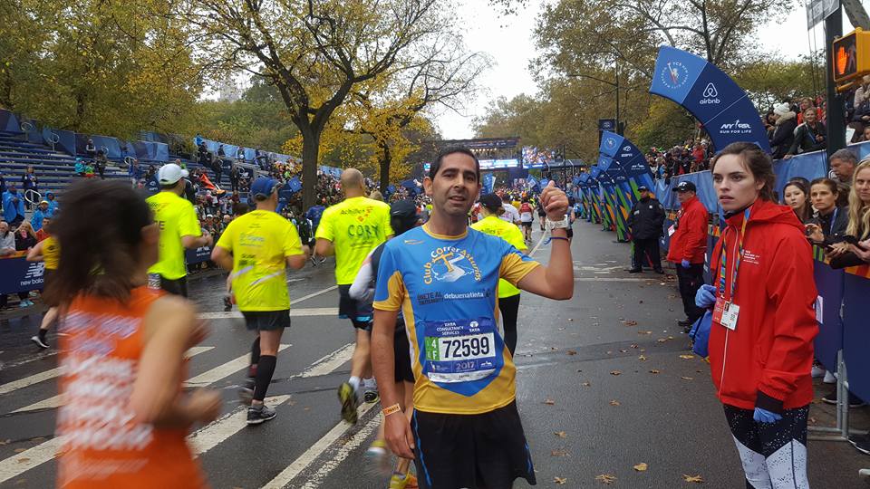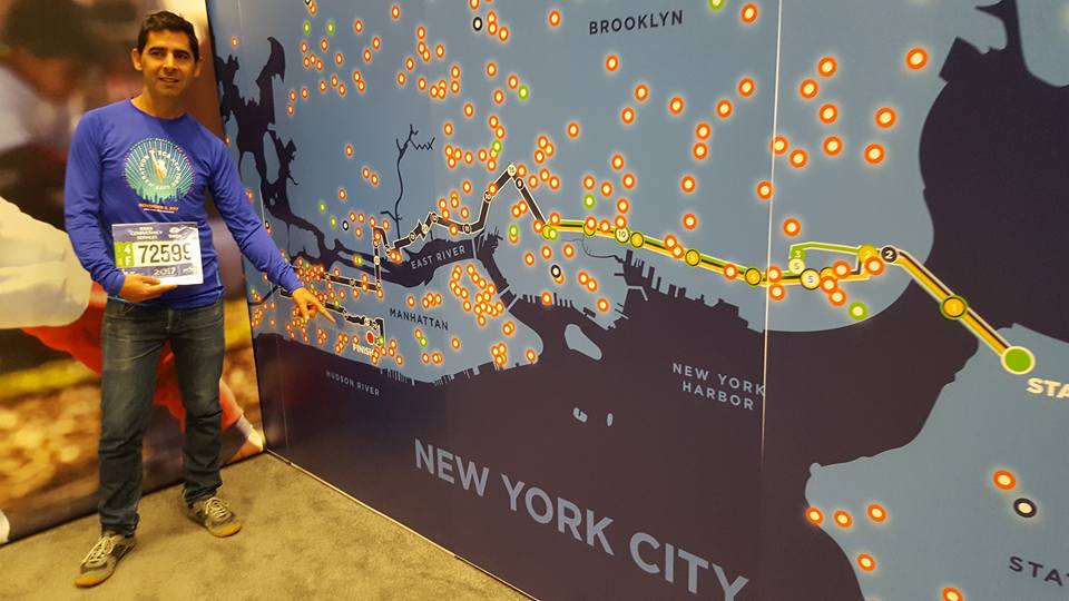 Sí, claro... a ver (la maratón) es la excusa porque oportunidades para ir a Nueva york tampoco iba a tener muchas. Entonces me dije, si consigo dorsal es la excusa perfecta para ir a Nueva York. Con lo cual, nos fuimos una semana antes, recorrimos toda la ciudad, con lo cual yo iba súper preparado para hacer la maratón, las dos últimas semanas no corrí, una semana de turismo (risas) luego el ferry, no sé qué, no sé cuanto, madrugar...
