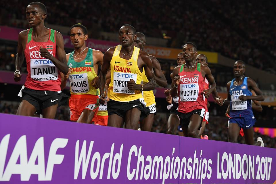 Pero, evidentemente, cuando se sale a competir no puede hacerse pensando que ganar es imposible, aunque probablemente lo sea. Y menos si eres un tipo del valor (¡o la temeridad!) del ugandés Cheptegei. Hace unos meses le habíamos visto intentar otro de esos imposibles: batir a la armada invencible de Kenia en el mundial de Cross. Con la motivación extra de competir en casa, el joven Joshua inició la carrera a ritmo suicida y consiguió dejar atrás a todos sus rivales… pero acabó pagando cara su osadía, se desfondó por completó y vio cómo, uno a uno, le superaban hasta veintinueve de ellos mientras él apenas podía seguir avanzando para alcanzar la meta en la trigésima posición. Unos meses después, ni mucho menos desalentado por aquel desastroso desenlace, ahí estaba de nuevo ese mismo alto y delgado atleta enfundando en la camiseta amarilla de Uganda, marcando un ritmo frenético nada más darse el pistoletazo de salida en el diez mil del estadio olímpico de Londres. Eso sí, aunque llegaba a escaparse unos metros, en compañía del ganador de aquel cross, el keniata, Kamworor, esta vez Cheptegei no se distanciaba tanto y la carrera no se rompía en mil pedazos. Pero aunque el ritmo decrecía algo en la segunda vuelta, después de un primer giro a ritmo de liebre contratada para buscar el record mundial, la mecha ya estaba encendida y la prueba seguía rápida… ¡muy rápida! Porque aun con el ugandés siendo esta vez no tan temerario cómo lo había sido sobre la hierba de Kampala, su osadía inicial tenía el efecto, no sé si espontáneo o tácticamente planeado, de servir de acicate al resto de atletas que soñaban con batir al que, enfundado en la elástica blanca del equipo británico, iniciaba la competición en los puestos de cola y hacía su primera aparición con una breve aceleración por calle 2 mientras arengaba a su público a la vez que ganaba algunas posiciones.