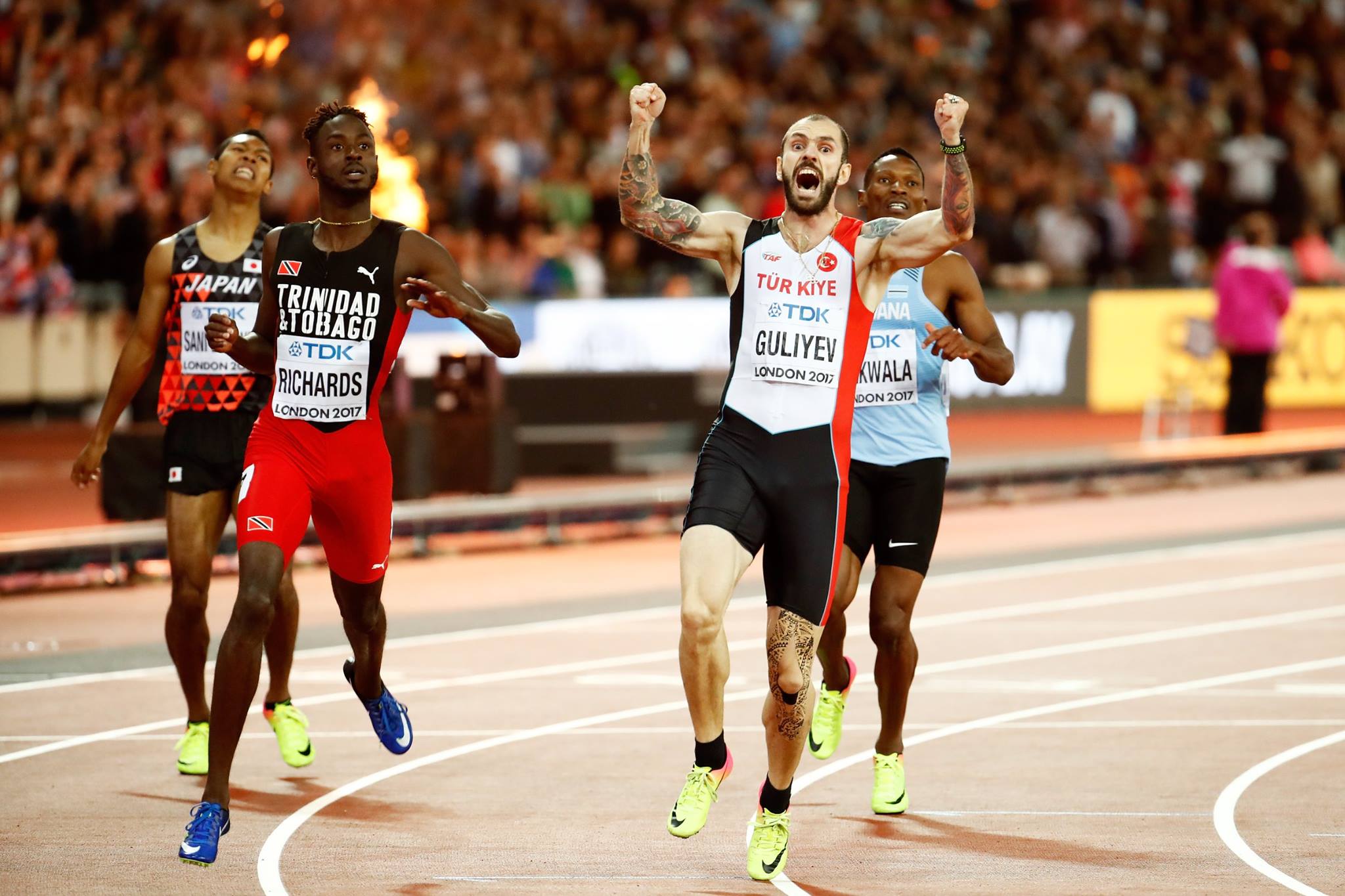 La primera final del 200 sin Bolt (¡y sin jamaicanos!) en mucho tiempo se presentaba, por tanto, muy diferente a las que protagonizaba el fabuloso caribeño, en las que el espectáculo era verle ganar, sin que hubiese la más mínima incertidumbre por el resultado. Además, también se planteaba de modo muy distinto a lo previsto unos días antes en el 400, con un ‘repoker’ de favoritos en lugar de solo dos calles en las que fijarse. Y, en efecto, la carrera resultaba de lo más igualada desde el mismo instante de la partida. El más rápido en dejar los tacos y ponerse en marcha parecía ser Young. Pero a mitad de curva ya le estaba cogiendo la compensación Van Niekerk por su interior, mientras Guliyev y Makwala hacían lo propio por su exterior con Richards, que había partido algo más lento por la calle 7. Al entrar en la recta el norteamericano ya se había quedado atrás mientras el sudafricano parecía tener una ligera ventaja sobre el turco y el botsuano. Pero a Makwala se le estaba acabando también el gas. Todo lo contrario que al de Trinidad y Tobago, que surgía a su derecha en plena aceleración mientras Guliyev mantenía el pulso con Van Niekerk, recortando un poco en cada zancada del pequeño margen que aun había entre ambos. Al sudafricano se le hacían interminables los últimos metros, al de Trinidad se le quedaban cortos. En medio de ambos, el turco nacido en Azerbaiyán era el primero en romper con su torso el invisible hilo de llegada. Al final no había ganado ni el ‘bueno’ (segundo, por una milésima sobre el tercero) ni el ‘malo’ (decepcionante sexto), sino el que tenía más pinta de malvado, con sus ojos hundidos, su nariz aguileña, su afilada barba y su pálida piel cubierta de tatuajes. Un azerí nacionalizado turco había acabado por imponerse en una final definitivamente muy diferente a las que protagonizaba Bolt pero no por ello menos fascinante.