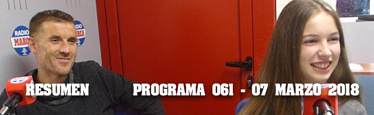 'Marca Runner Asturias' volvió con el programa número 61 a su lugar habitual en la programación semanal de radio MARCA Asturias, el miércoles de 7 a 8 de la tarde. La emisión del día 7 de marzo arrancó con el amplio repaso que Miguel Collado realiza a las competiciones disputadas el fin de semana anterior, para el que en esta ocasión contamos con las declaraciones y comentarios post-carrera de Isabel Barreiro (subcampeona de España Sub20, 3000 metros - pista cubierta), Ricardo Menéndez (subcampeón de España M35, 400 metros - pista cubierta), Dani Bayón (subcampeón de España Duatlón Media Distancia), Pablo Sierra (3º absoluto y primer asturiano en la Kangas Mountain), Marta Escudero (ganadora de la Kangas Mountain), Carla Rodríguez (2ª femenina y primera asturiana en la Speed Trail de la Kangas Mountain), Raúl Bengoa (2º absoluto y primer asturiano en la media maratón de Pola de Siero), Lorena Pérez (2ª clasificada y primera asturiana en la media maratón de Pola de Siero) y Juan García (1º Veteranos E en la media maratón de Pola de Siero).