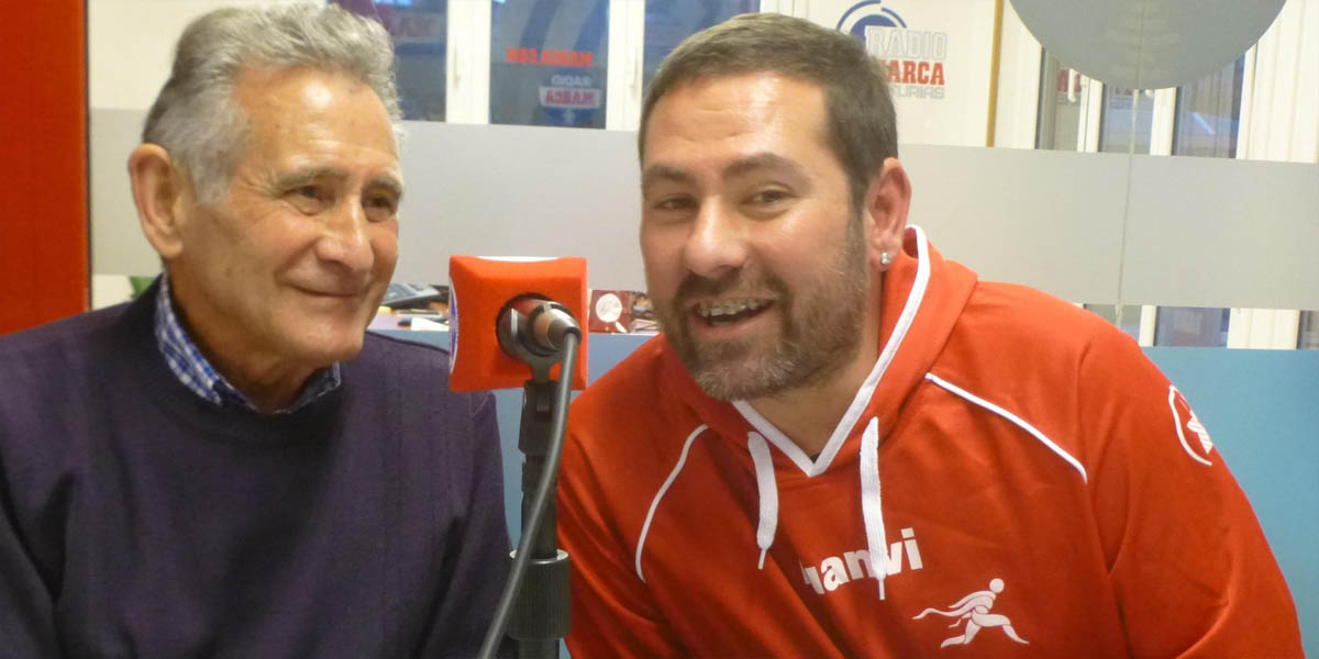Nuestro segundo invitado fueron en realidad dos, con el mismo nombre y apellido, Efrén García. Un dúo muy especial formado por padre e hijo, los dos vinculados al atletismo. El más veterano, Efrén García Pesquera, de 82 años de edad, sigue compitiendo habitualmente en pruebas de pista, especialidad en la que se inició pasados los cuarenta y en la que ha conseguido victorias internacionales y nacionales en pruebas de mediofondo. El más joven, su hijo Efrén, es el entrenador de su padre además de trabajar con la cantera en el Estadio Gijón Langreo.